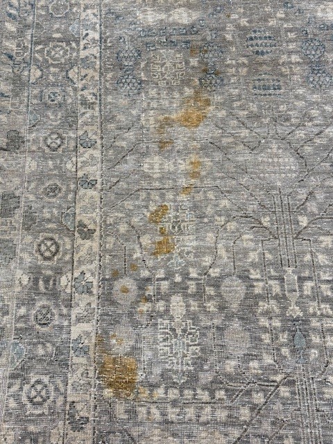This is an example of a rug that was cleaned but still had the remains of the stain after the wash. The reason being this was a harsh stain which should have been cleaned at the time but was not asn the stain persisted. The rug will require the following: