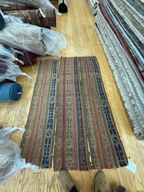 This is an example of a kilim that was torn apart. Jafri Rugs will have to do the following: