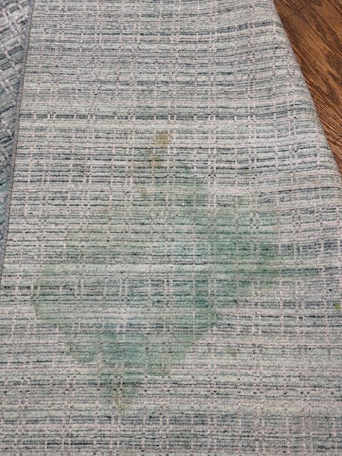 poor condition. The rug was made with wool and viscose and is soaked in urine and has moth damage