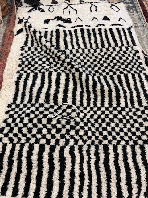 This customer required cleaning and repair work on this moroccan shag rug. The rug requires shearing as the wool is uneven and should be cut down.