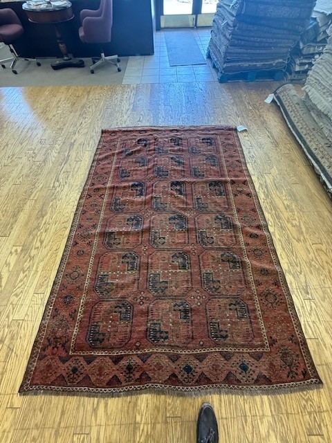 This is an example of a classic Khotan/Turkoman circa 1900 rug. The rug is a classic circa 1900 rug and went thru serious reweaving and fixing. The rug required the following: