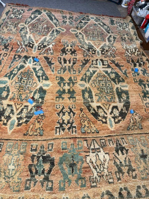 This an example of a valuable Moroccan rug Jafri Rugs restored back to its original condition. The rug had enormous moth damage and the binding also required fixing.