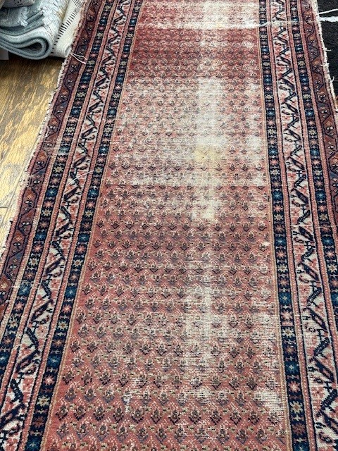 This an example of a valuable Mir rug. The rug had enormous moth damage and the binding also required fixing.